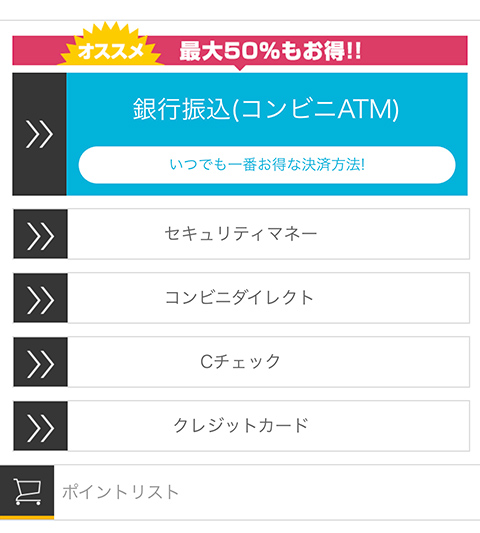 銀行振り込みとコンビニ決済での支払いは、ボーナスポイントが付与されるのでいちばんお得に利用できます。